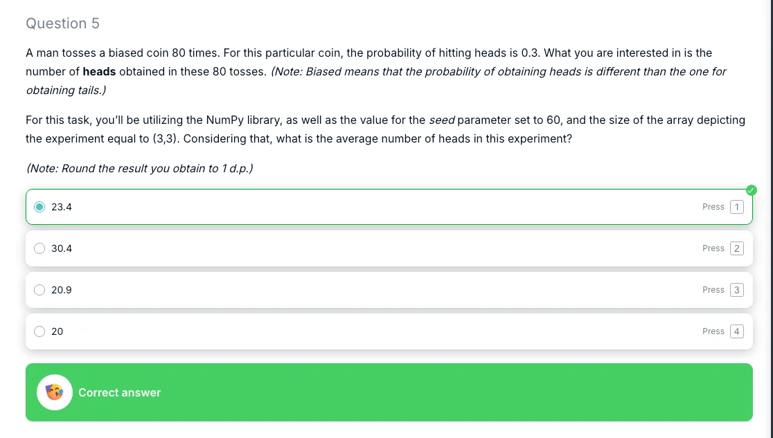 The behavior of numpy seems to have changed over time. This answer is no longer valid. Please test what I say and verify for yourselves. If I'm correct, please fix the answer to the quiz question. Thanks!